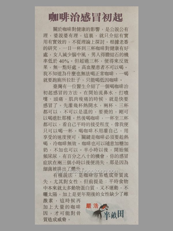 According to Yim, a film director as well as the author of this article, he has a problem reacting to ordinary coffee. Every time he consumes, he needs to go to washroom and has loose bowel. So he could only limit himself to low-caffeine coffee.